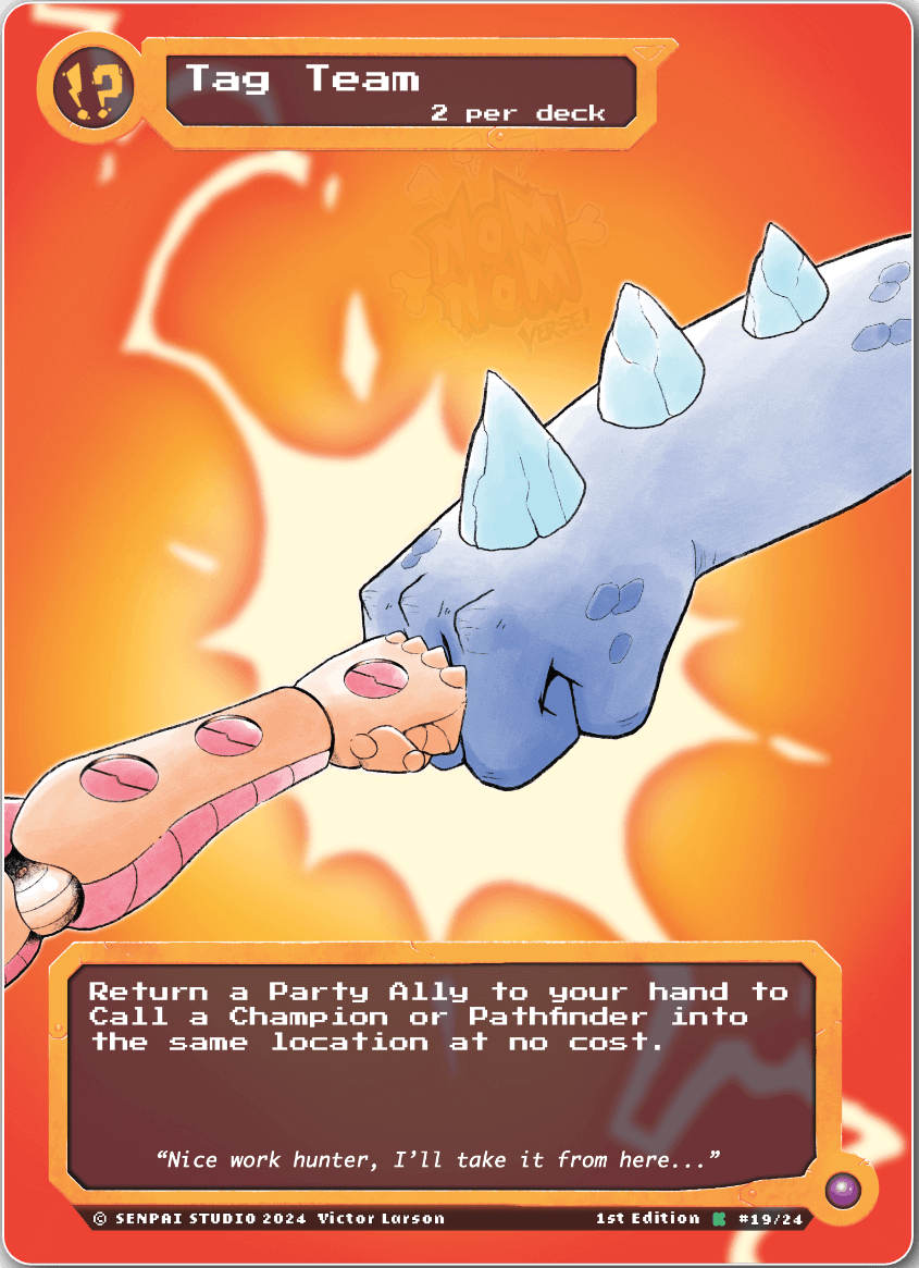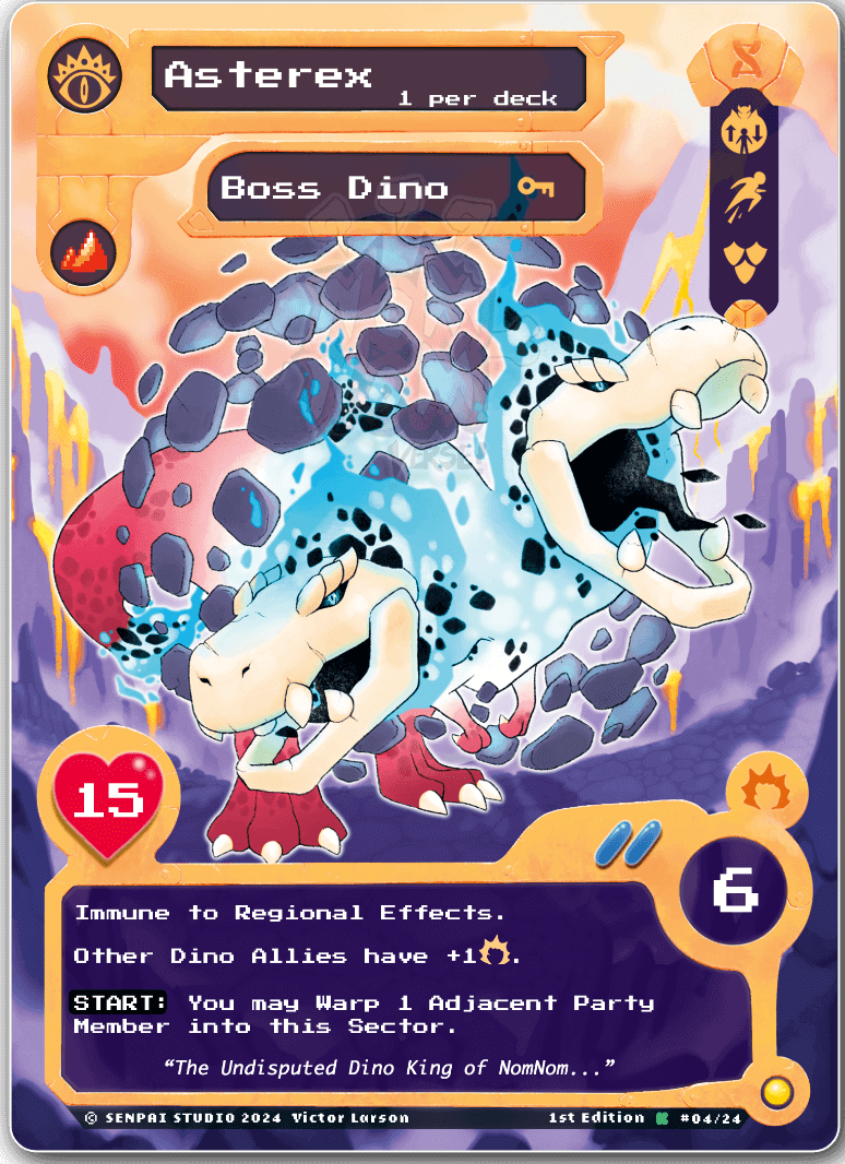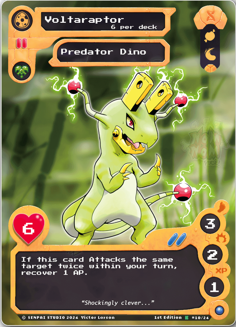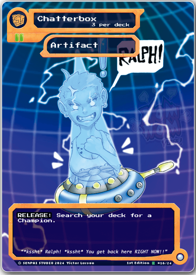 These decks were first seen and made available at Spookala 2024. Demo/Beta versions were printed by Rex3 printers before NomNom moved to a new printed company. Kickstarter pledges that included Starter Decks received copies of these Beta Decks in the Kickstarter Care Packages sent out December 2024.