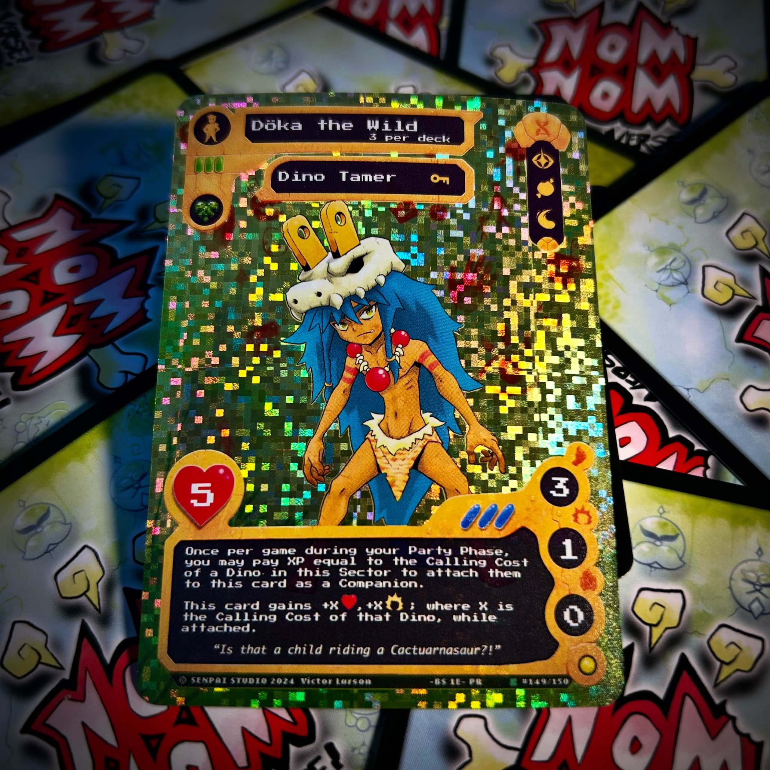 Blister Pack: Each Blister Pack Contains 1 NomNom Verse Kickstarter Base Set Pack and 1 of 5 exclusive Promo Cards! (Pack rarity breakdown: 5 C, 3 UC, 1 R, 1 Hit)