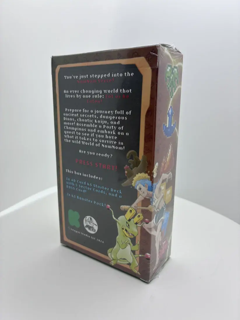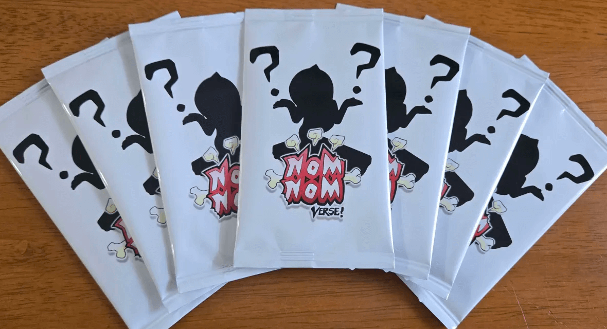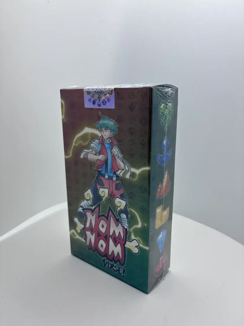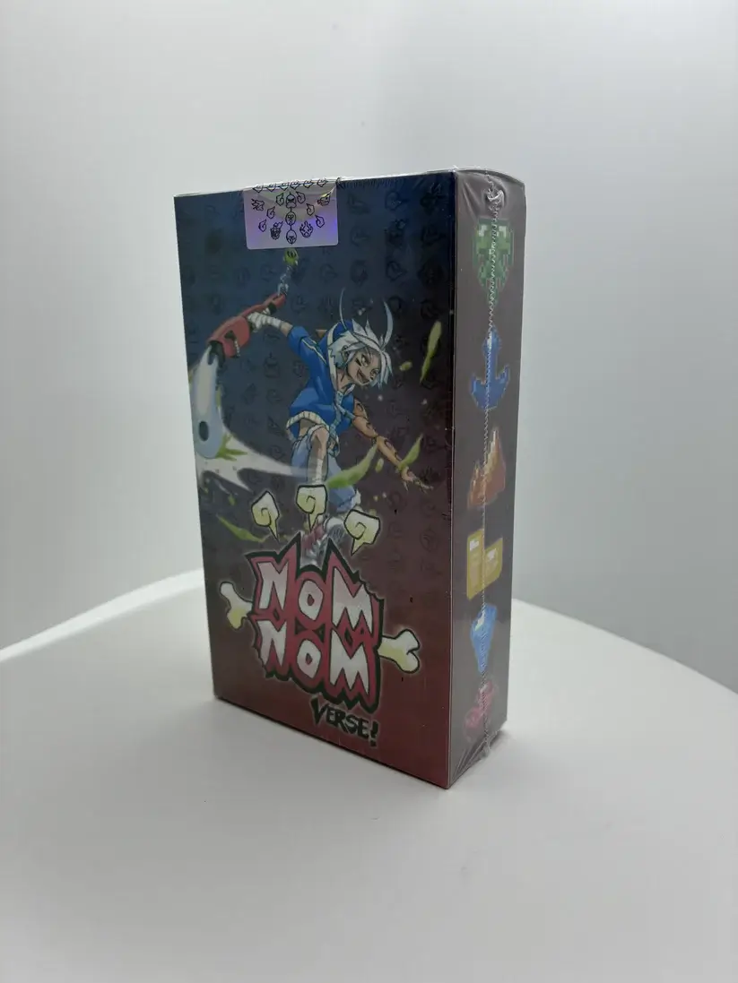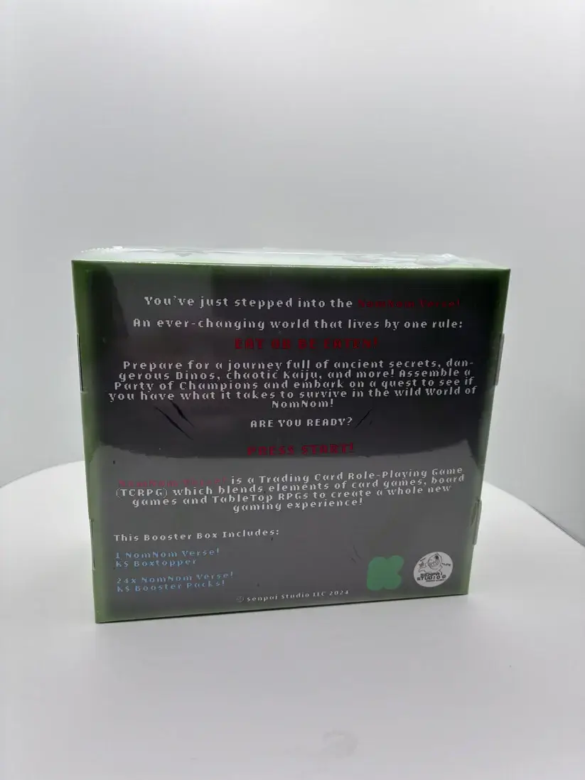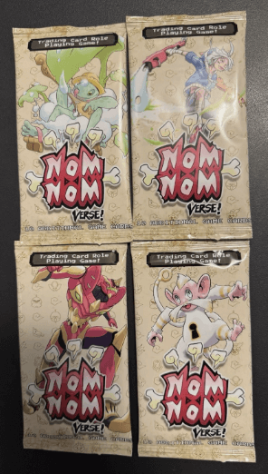 Booster box: Each NomNom Verse! Kickstarter Base Set Booster Box includes 24 packs and 1 Boxtopper pack. (24 packs & 1 Topper)